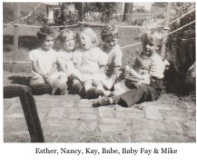 As soon as I was old enough I had to watch my nieces and nephews, Jerry was six, Peggy six and half, Bobby five and half and Bud 8 years, younger than I. The only time my father ever threaten to spank me was when I was watching them. He had a big long work table, standing about three feet off the ground and I had built a playhouse on it using a latter to get up on it. I wouldn’t let them play in my playhouse, I was afraid they might fall and they went crying to my dad. He sent me inside promising to spank me for being selfish and I locked myself in my bedroom and when he found out why I wouldn’t let the little ones in my playhouse he came to the door to apologized, but l didn’t stop crying. After he brought me some ice cream I accepted his apology. It was a real hurt to think that he thought I was selfish, for to me my father was everything.