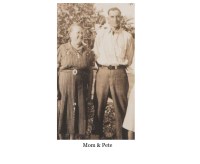Mrs. Short give me a Toy Spitz puppy, he was my pride and joy. One day mother started the old gas washing machine and so startled my puppy that he leaped off the back porch and hit the root cellar door and broke his neck. I was heartbroken and grandpa Kuder help me give him a grand funeral. When I was four and a half mother took me to a tea in honor of Mrs. Patsy Reed who was with the Donner Party. My brother Pete told me she ate people and when I was introduced to her I was so frightened I screamed “don’t eat me.” Poor mother was so embarrassed I was sent home as punishment but Pete got a lecture.