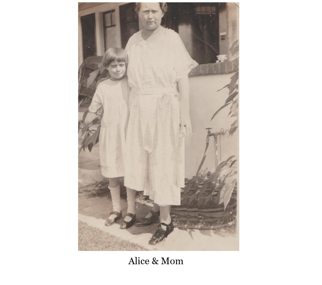 I was spoiled: When my sister Alice was watching me, which was most of the time and I didn’t get my way I would throw myself on the ground crying and screaming. That ended when I was about five. One day when I did it in front of Mrs. Churchill’s house she came out, stood over me, telling me to get up and never do that again and learn to be a proper lady. (bye the way – she was old and look to me like a witch) Later when I was confirmed in the Episcopal Church she was my sponsor and stood up for me.