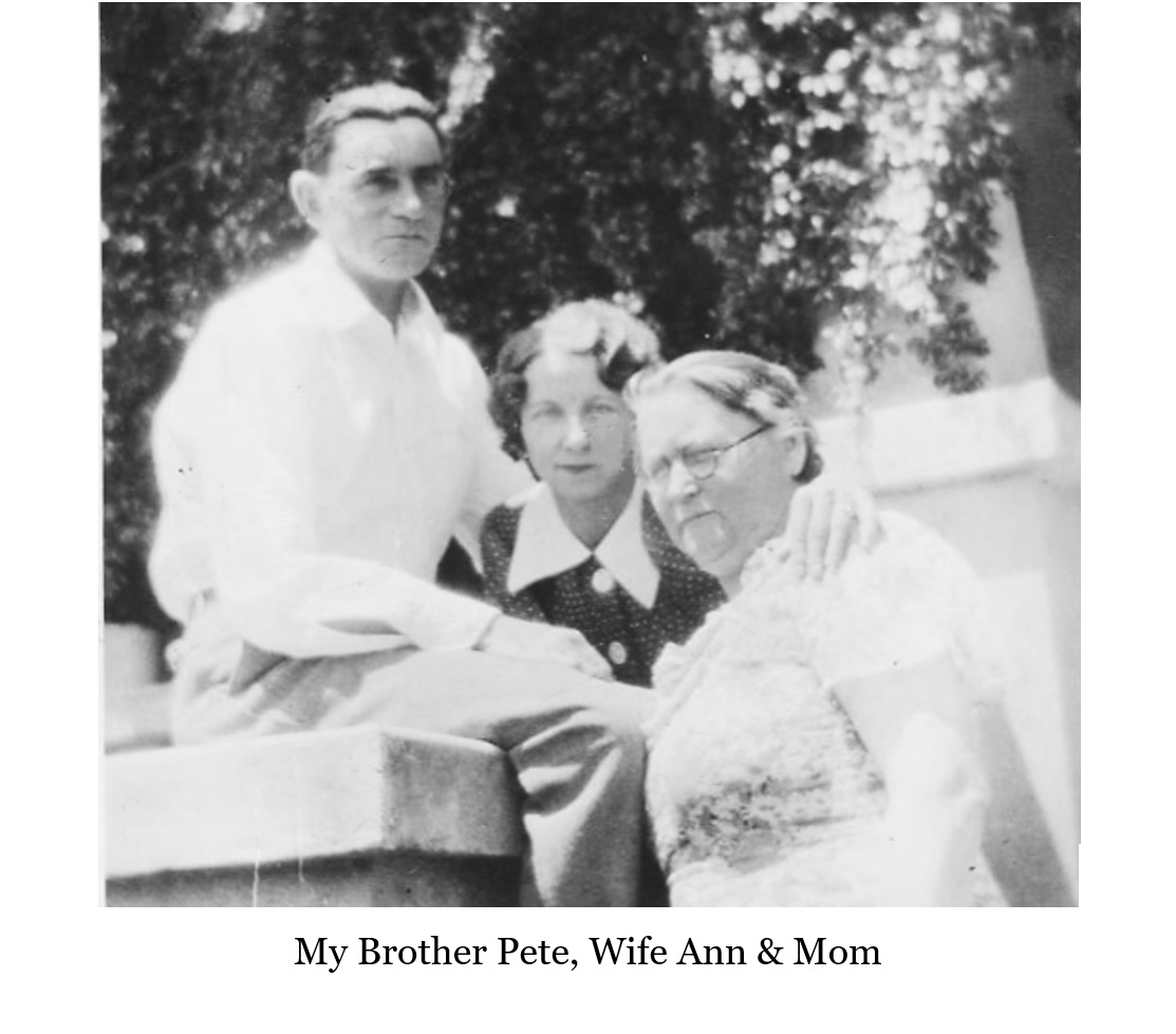 As soon as I was old enough I had to watch my nieces and nephews, Jerry was six, Peggy six and half, Bobby five and half and Bud 8 years, younger than I. The only time my father ever threaten to spank me was when I was watching them. He had a big long work table, standing about three feet off the ground and I had built a playhouse on it using a latter to get up on it. I wouldn’t let them play in my playhouse, I was afraid they might fall and they went crying to my dad. He sent me inside promising to spank me for being selfish and I locked myself in my bedroom and when he found out why I wouldn’t let the little ones in my playhouse he came to the door to apologized, but l didn’t stop crying. After he brought me some ice cream I accepted his apology. It was a real hurt to think that he thought I was selfish, for to me my father was everything.