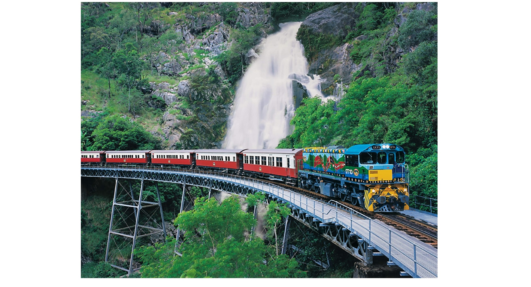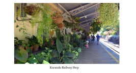 The morning found Nancy and Monica arriving at the Cairns central train station for the 8 30 departure of the scenic Kuranda Railway Tour. A brief wayside stop at Freshwater found additional tour groups boarding. The two experiencing the viewing comfort of the carriage cars, their two hour journey to Kuranda encompassing the crossing of 37 bridges, the train slowing to view the Stoney Creek Falls Bridge, being one of the most photographed bridges in Australia because of its structure and the spectacular beauty of its location. It’s concrete foundations on which the wrought iron trestles are mounted was started in 1887 and is one of only two Queensland railway bridges constructed with wrought iron trestles. Their railway journey passing through 10 hand carved tunnels as they continue to view the scenic splendor of numerous waterfalls that frequented the surroundings. A non-station stop was enhanced, enabling those aboard to absorb the breath-taking steep tiered Barren Gorge, with its cascading falls of the cresting Barren river descending from the Atherton Tablelands that bordered the majestic rainforest.