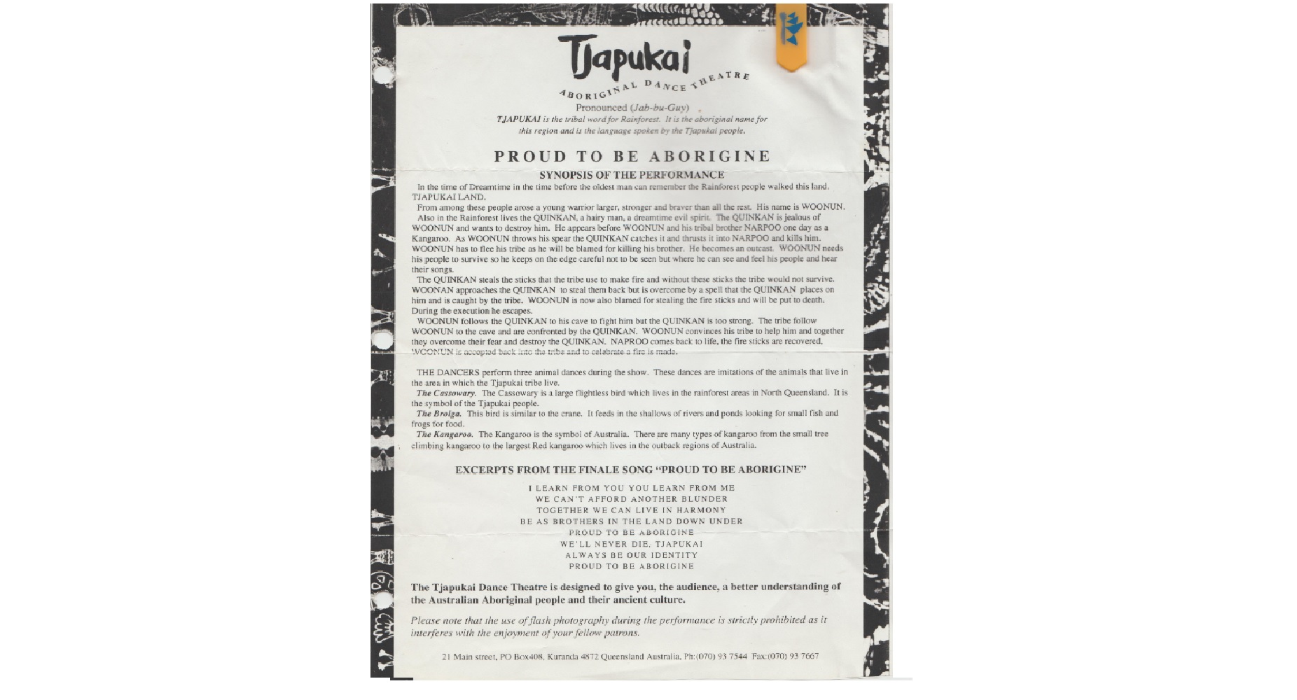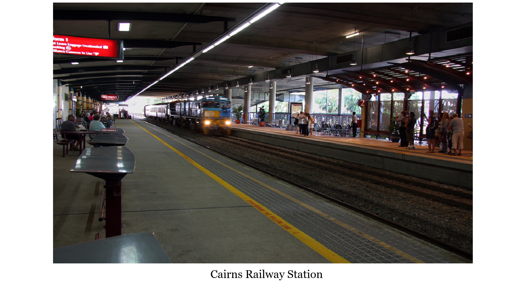 Arriving at Kuranda Station, world renowned for its tropical gardens and historic significance, noted as one of the most photographed railway stations in the world. Departing the train, the two finding the station but a short walk into town, visiting the art galleries and ethnic Aboriginal crafts displays. After lunch a scenic rainforest walk before returning to Cairns, their day still having more to come, attending a tour scheduled Night Fire Show at the Tjapukal Dance theatre, in the Abor Tjapukai’s Aboriginal Cultural Park, six miles northeast of Cairns. The two experience meeting the Bama, the Indigenous rainforest people, taking you on a historical journey, telling of actual events passed down through dance and music, with the haunting sounds of the aborigine didgeridoo, a 1000 year old conical instrument. The fire dance presentation highlighting the their use of fire to open a canopy in the rainforest, enabling a savannah, to increase the number browsing and grazing animals for them to hunt..