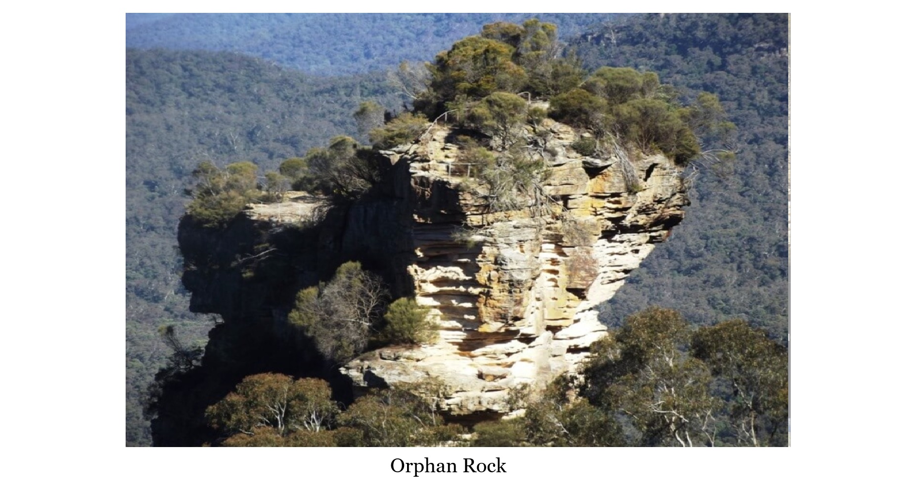 The morning again found the two explorers traveling, this time to the most visited city in the Blue Mountains, Katoomba and its spectacular surroundings. Boarding the Scenic Railway, the railway built in the late 19th century to serve the Katoomba coal mine, down a 52-degree incline, the steepest railway incline in the world. Seated, they continued down the sandstone cliffs, dipping into a rock tunnel, next to the famous Orphan Rock landmark, and then re-emerging to incredible views of the Blue Mountain surroundings. At the bottom station Nancy and Monica dismounting, deciding to take the mile and half Scenic Walkway back through the Jamison Valley rainforest.