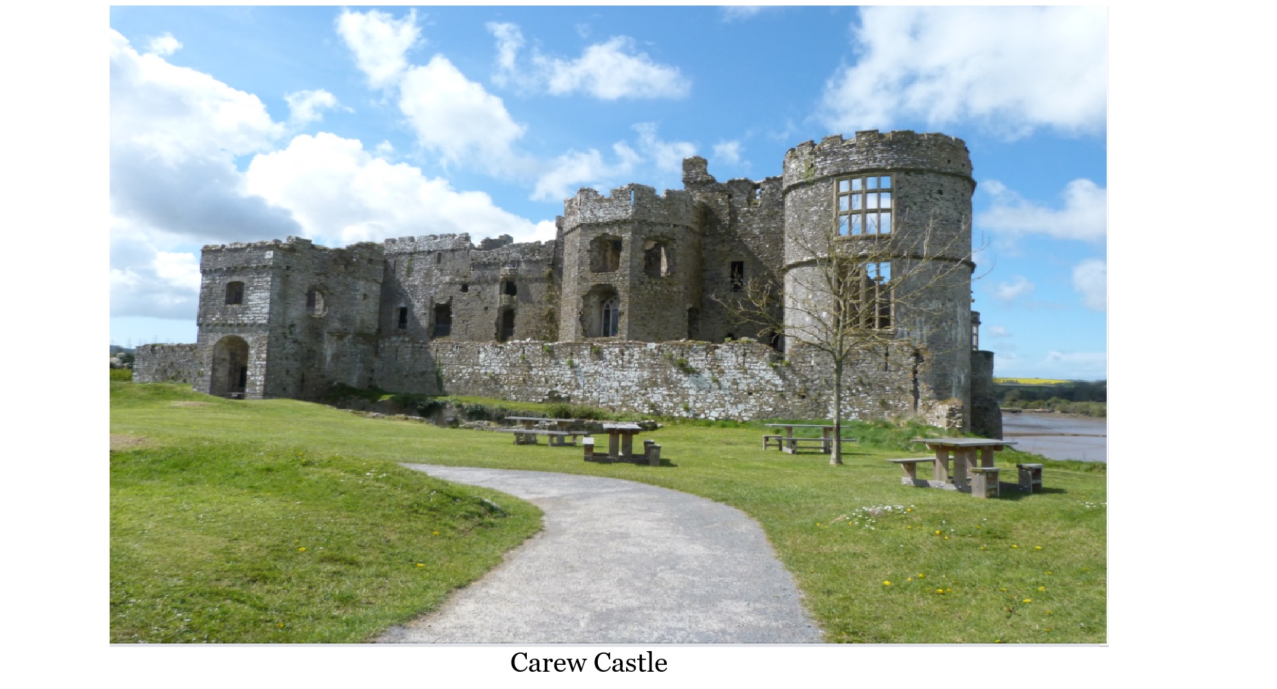 The Pembrokeshire Coast National Park consisted of 243 square miles of landscapes, rugged cliffs, sandy beaches, wooded estuaries, the moorland of the Preseli Hills and the wooded Gwaun valley. Although it was on her list to see, Nancy accepting, there wasn’t enough time to take in everything. Her first stop was viewing the Carew Castle, then moving on to the site where the Celtic ancestry lived and built their hilltop fortresses some 2,000 years ago. Nancy soon discovering that Celtic heritage was integral to the national identity in Wales, Welsh, the Celtic language was still widely spoken and printed for use in directional signs.