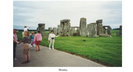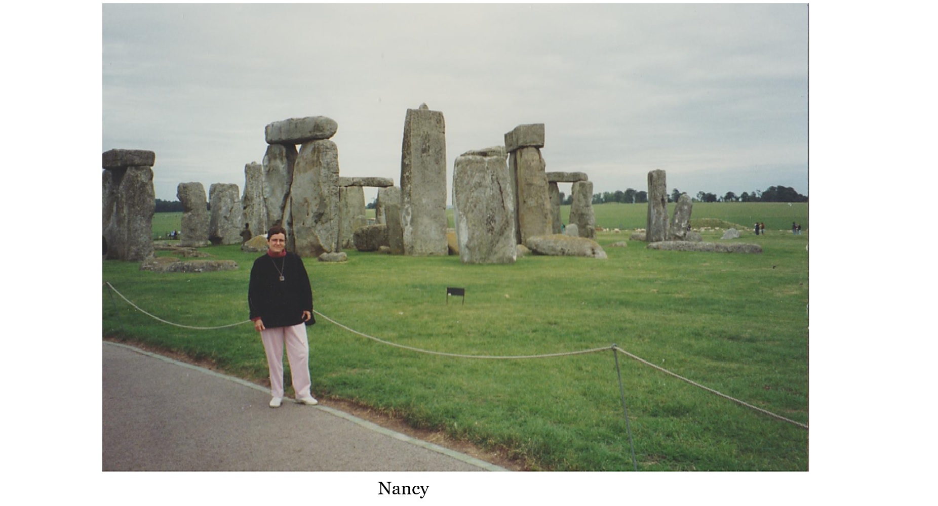 A morning departure by train to Swindon, a bus to Avebury, the two registering at the Avebury Lodge. The B&B uniquely within Avebury’s large circular ring of stones. Nancy and Monica joining a local tour excursion, viewing the acclaimed Stonehenge phenomena, the historic stone creation constructed to commemorate an unknown event some 5000 years ago. The ring of stones a wonderment, the stones 13 ft. high, 7 ft. in width, weighing 25 tons, set in circular pattern, Neolithic and bronze age monuments. The group moving on, viewing a round tumuli, a burial mound, one of the several hundred documented mounds. entering the underground tomb of West Kennet Long Barrow, a burial site built around 3650 B C, its excavation having discovered partial remains of individuals inside. With their return to Avebury, enjoying an evening walk, the twilight surrendering to a canopy of stars, the two absorbing the serenity of the countryside’s stillness.