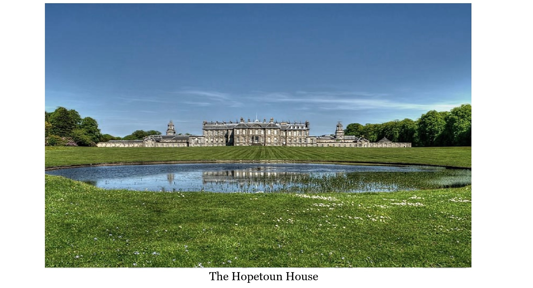 Their visit to St. Michaels completed, the two walking the four blocks to the post office so Monica could mail some items home. It was lunch time, Bill having suggested a place, the two discovering a long walk. Their timing was great, Bill finding them finishing their meal, driving them to the Hopetoun House Estate, deemed one of the most beautiful structures in all of Scotland. The house, within sight of the Water of Leith river, was built for Charles Hope, the 4th Marquess of Linlithgow, and was an ongoing project for a half of century starting in 1699. The two viewing it magnificence, Nancy deciding that of all the Palaces and houses she experienced, without a doubt, this was her favorite.