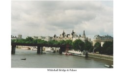 Their tour of London continuing on the banks of the Thames River, viewing the Palace of Westminster, where the two houses of Parliament meet, the House of Commons and the House of Lords. observing the Whitehall bridge with its magnificent Whitehall Palace overlooking the river. both taking notice of the busy waterway, continuing their riverside scenic voyage. As the evening hours approached, their bridge viewing wouldn’t be complete without the London Bridge, but finding that in reality, what they thought was the London bridge was the Tower Bridge. They couldn’t help but notice during their London travel, seeing a six foot fire discharging dragon, discovering there were 13 such statues, placed as markers to designate the boundary of the city of London. They long day coming to an end, returning to the London House, this their final night before returning home.