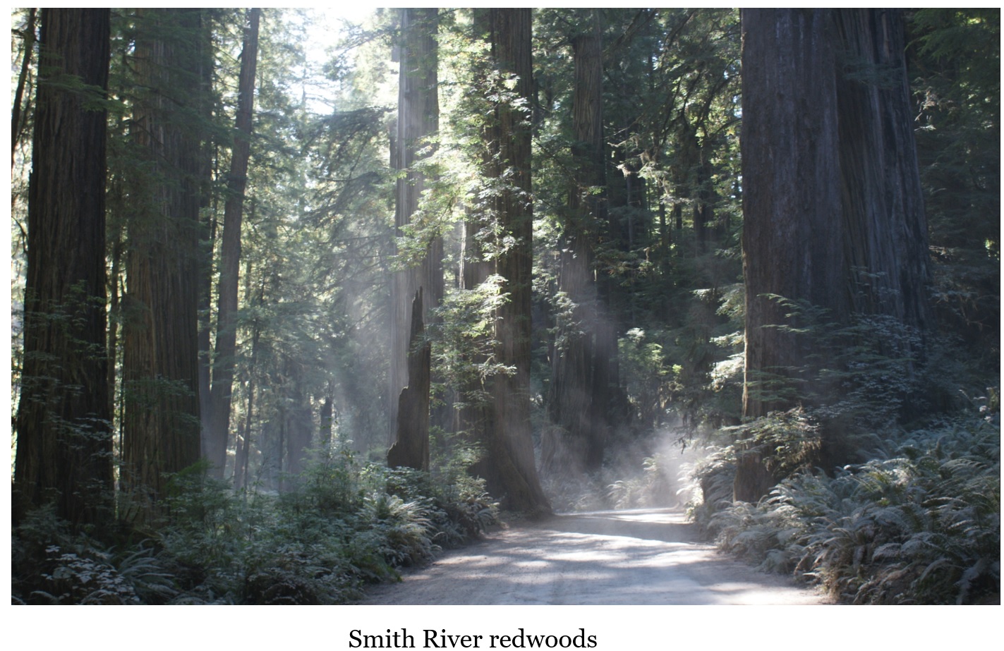 Approaching the Jedidiah Smith National Recreation Area with its towering redwoods and ambling Smith River, bringing the travelers to a halt. A time to pause, Gary Jan- Robert and Sandi disembarking their conveyance, wetting their feet in the cool clear aqueous Smith River waters , a time to reflect on the silent wilderness serenity, with its majestic aura and absorb this temporal meaning of nature’s opulence. Gary, self-conscious of the scene before him, the visual majesty of Jan and his two children embellishing the already grandeur of the scenic surroundings, both a luminous presentation of God’s earthly creations.