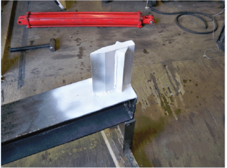 Homemade log splitter using welding chisel blades.