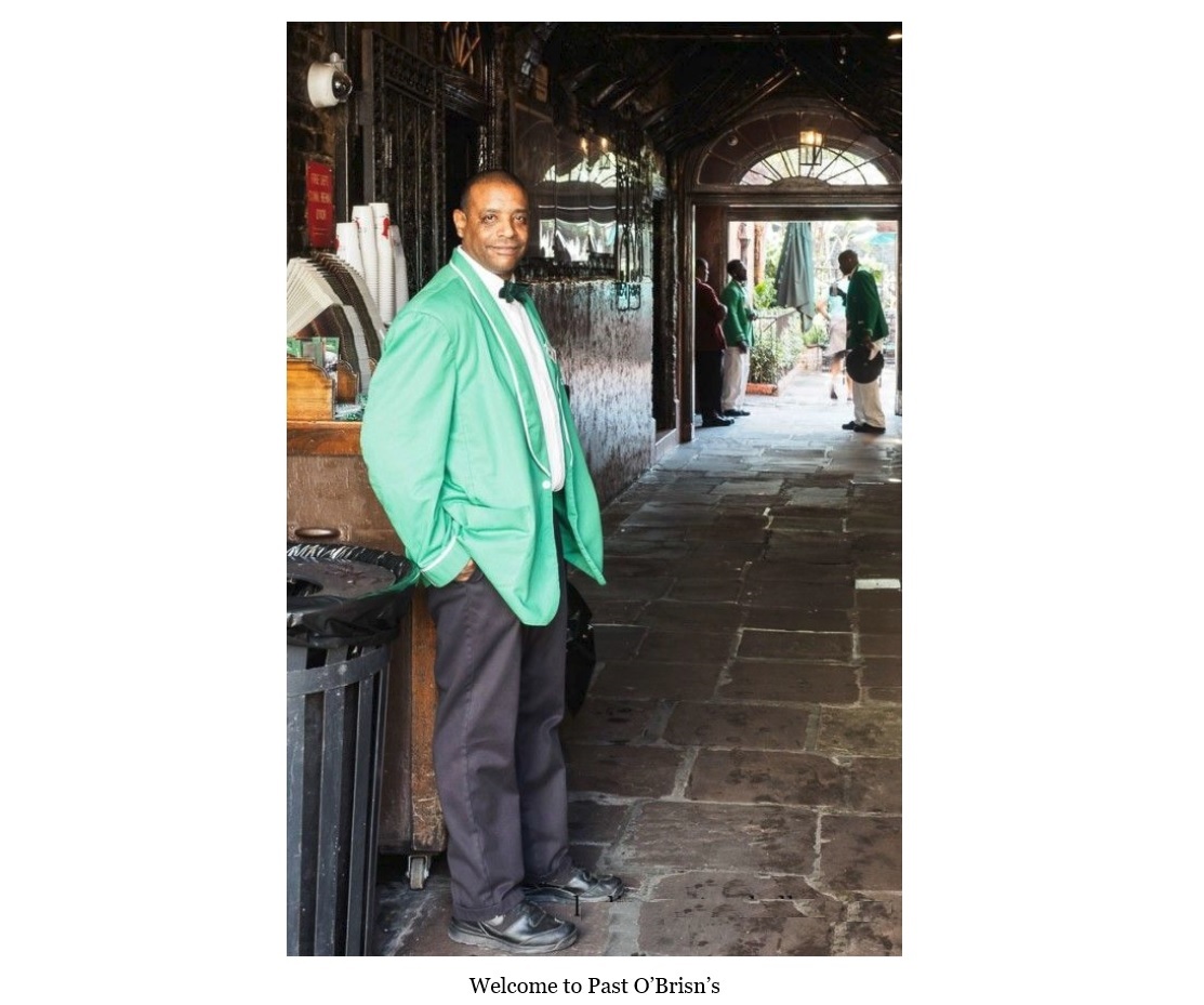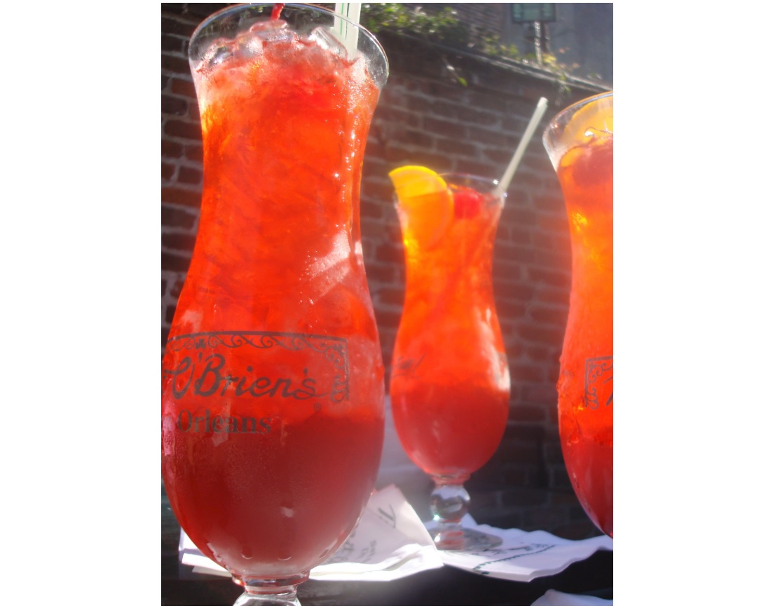 The evening about to culminate, a last accommodation, a beverage from Pat O’Brien’s. Gary acknowledging, a visit to the French Quarter wouldn’t be complete without an O’Brien’s famous Hurricane cocktail. The Hurricane, a rum and fruit juice mixture served by the green and white attired waiters in a hurricane lamp shaped souvenir glass, endowed with a logo and the Pat O’Brien name .