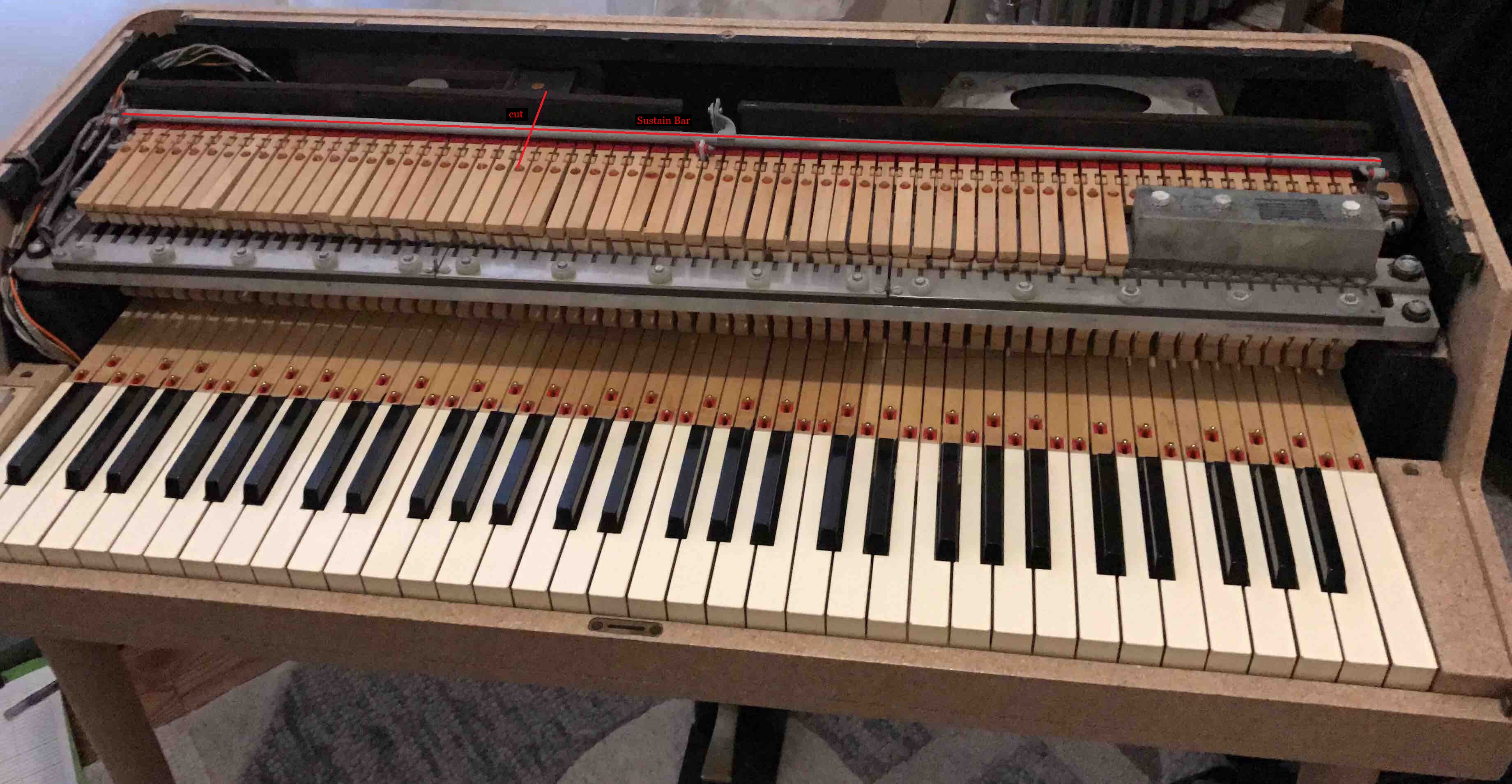 Gary immediately seizing the opportunity to bring the piano into the fold, the Wurlitzer #110 model becoming the newest member of the band. The piano having a 64 keyboard range, about a octave shorter on either end of a regular piano keyboard, Gary soon discovering the bottom octave could be utilized as a keyboard bass by splitting the sustain bar from the pedal action and plugging into an amplifier with the bass setting turned up, adding a much-needed sound to the band.
