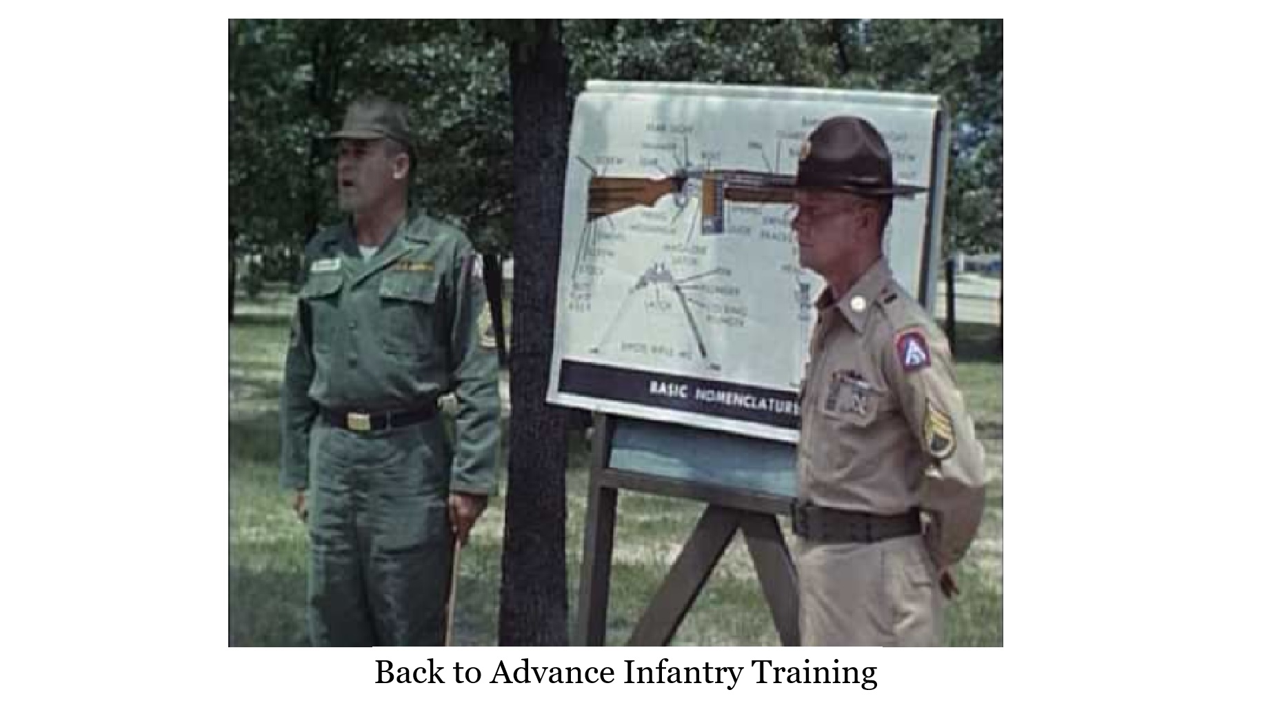 The first week in the unit discovering expeditiousness a convention, there was neither time for commission or convenience, continuous assignments, dawning from the reveille formation till evening dormancy with lights out, and the echoing sounds of taps heard over loud speakers throughout the post. Whether as a company or platoon, the training fold had standing marching orders , both for classroom attendance or practical field application exercises. a soldiering foundation of discipline prevailed, from the exact folding and placement of clothing in a footlocker, to the temporary silence in the mess hall, all highlighted with the never-ending use of kiwi shoe polish, and the charge of spit-shining both boots and shoes. A little known secret to hastily obtain a patent leather or spit shine appearance was to wipe a normally brushed shined boot with a 5 day deodorant pad, but only done in an extreme emergency, as this procedure would damage the leather over prolong use.. a competition was instilled between platoons, each sergeant in their role as a drill instructor ambitiously motivating his array, some complained, but Gary finding the continuous introduction of engaging military activities very relevant to his past youthful apparitions, and now becoming a discerning and meaningful reality.