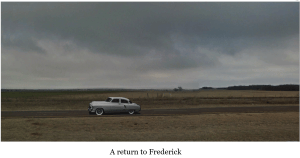 It was a little known reality, the 1952 Olds wheel base was compatible with the width of the rails addressing the Missouri Kansas Texas line. The three harlequins were about to accost a crossing in Frederick and attempt to position the four-wheeled transport, the 1952 Olds, on the tracks, either heading south towards Texas, or north to Manitou. A discussion deciding that it might be better to remain in Oklahoma, the decision being confirmed, Jerry aligning the vehicle on the tracks in a northern direction. A final procedure remained, lowering the tire pressure to allow the tread to better augment the tracks, the car fitting perfectly.