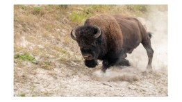 The soldiers discovering a small herd of buffalo grazing off the highway, Al desiring a closer look, driving across the open field. The buffalo not giving a second thought about the visitors until they were within 20 yards, the herd deciding to move away from the intruders. The Ford continued, the herd moving on, except one big buffalo, he apparently decided to stand his ground, turning towards the oncoming vehicle, pawing the ground like a bull in a ring. Al stopping the car, the buffalo lowering its head and began a charge toward them, a wide-eyed Martin putting the car in reverse, and backing away as fast as he could. the buffalo halting, giving them a look of superiority, before joining the grazing herd.