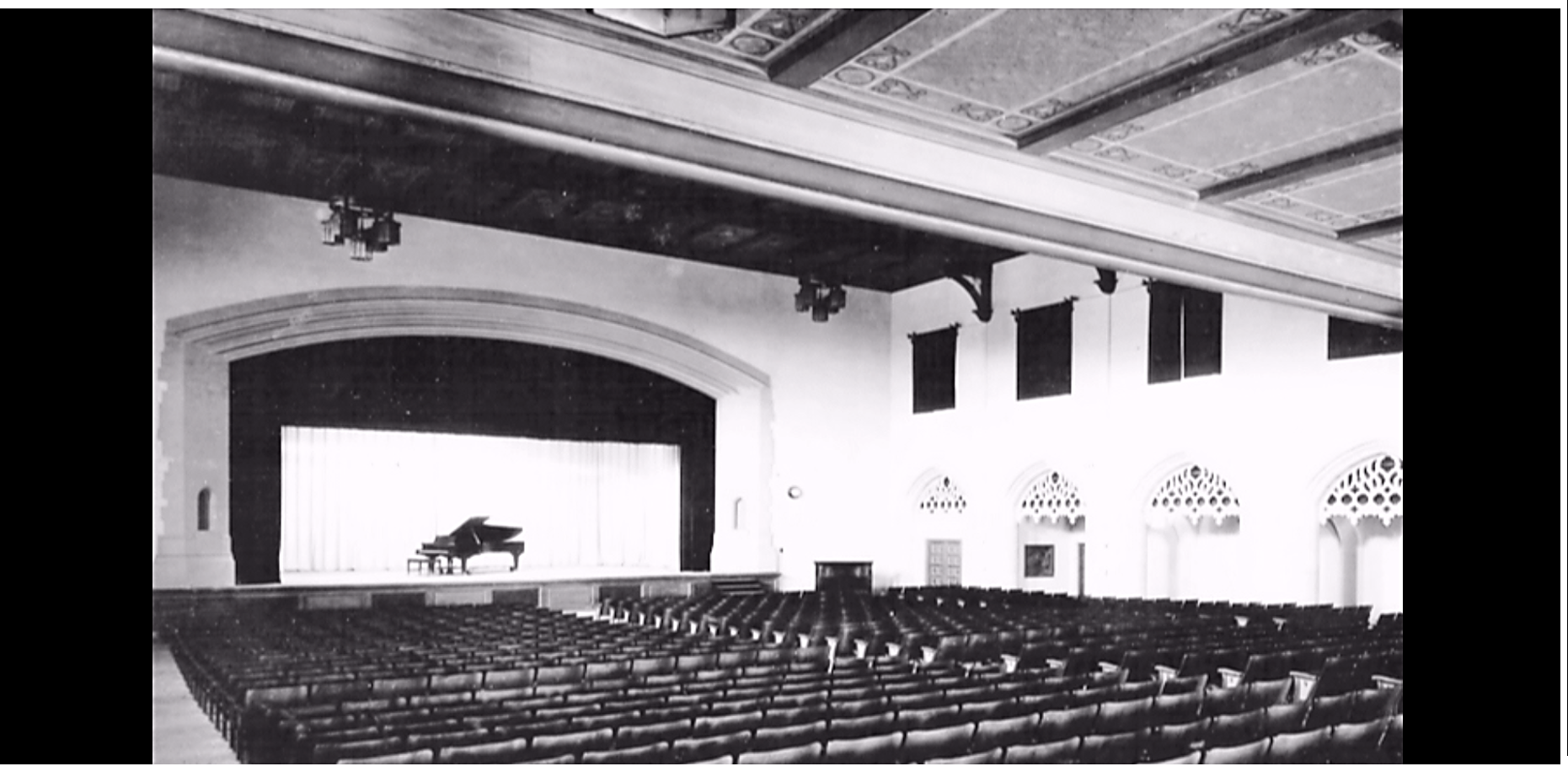 The auditorium with balcony seated 1500, equipped with a theatre projection accessible stage, dressing room, lighting and a 9ft. concert grand piano.  The extremely spacious library housing books numbering in the thousands with beam ceiling and windows bordering the open air but enclosed south court, accessible through the full service cafeteria.