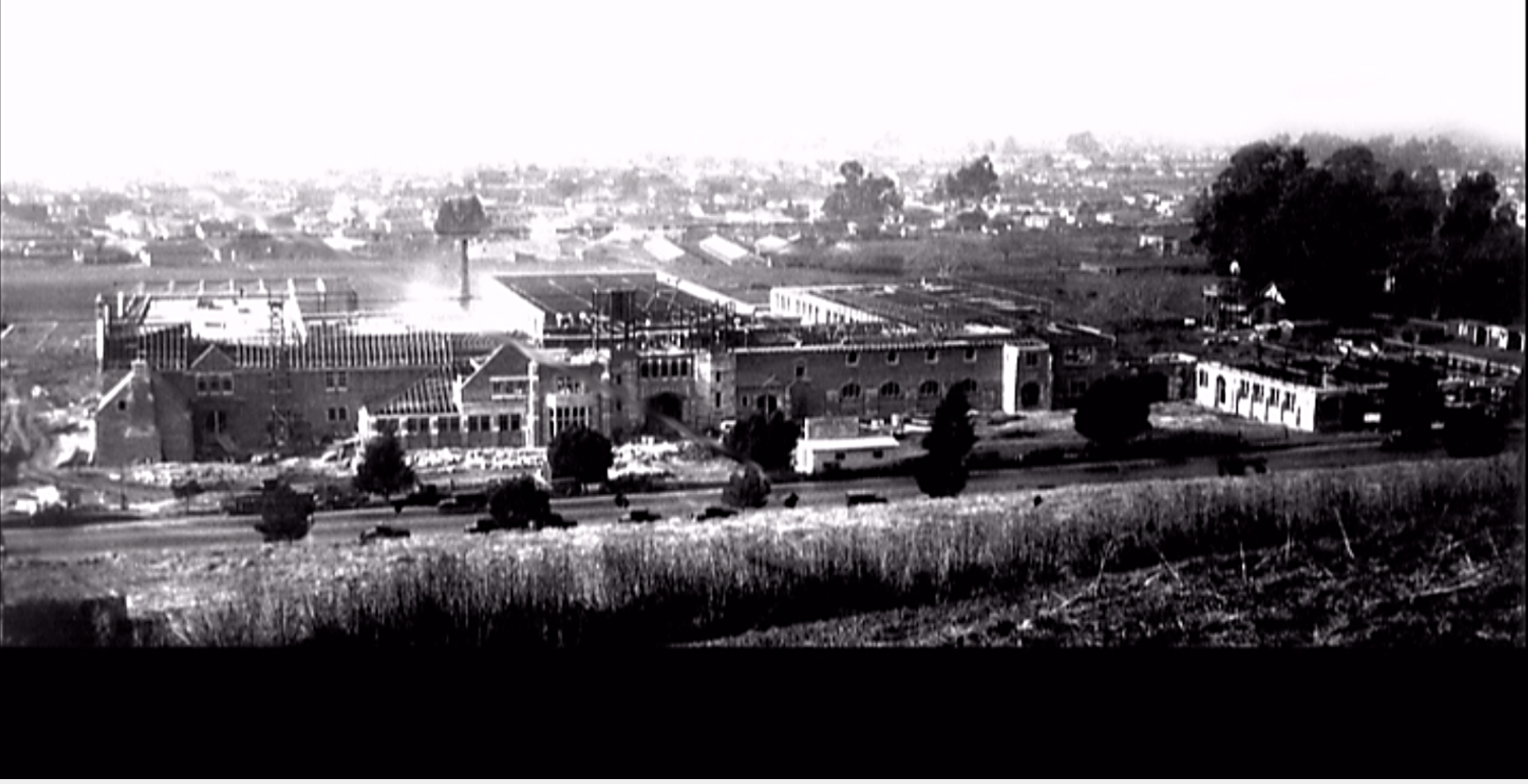 In 1920 after a study the Oakland Board of Education determine because of the expanding population the necessity for another high school in the southeast section of the Elmhurst District.  In 1927 they initially purchased 10.2 acres of land between 84th Ave and 88th ave west of Foothill Blvd.   Architects Chester Miller and Carl Warnecke submitting blueprints for a 15th century medieval castle of the elizabethan and gothic architectural design with cast cement, brick,  half -timber, slate, leaded glass and arches for approval, the foundation being poured in 1928.