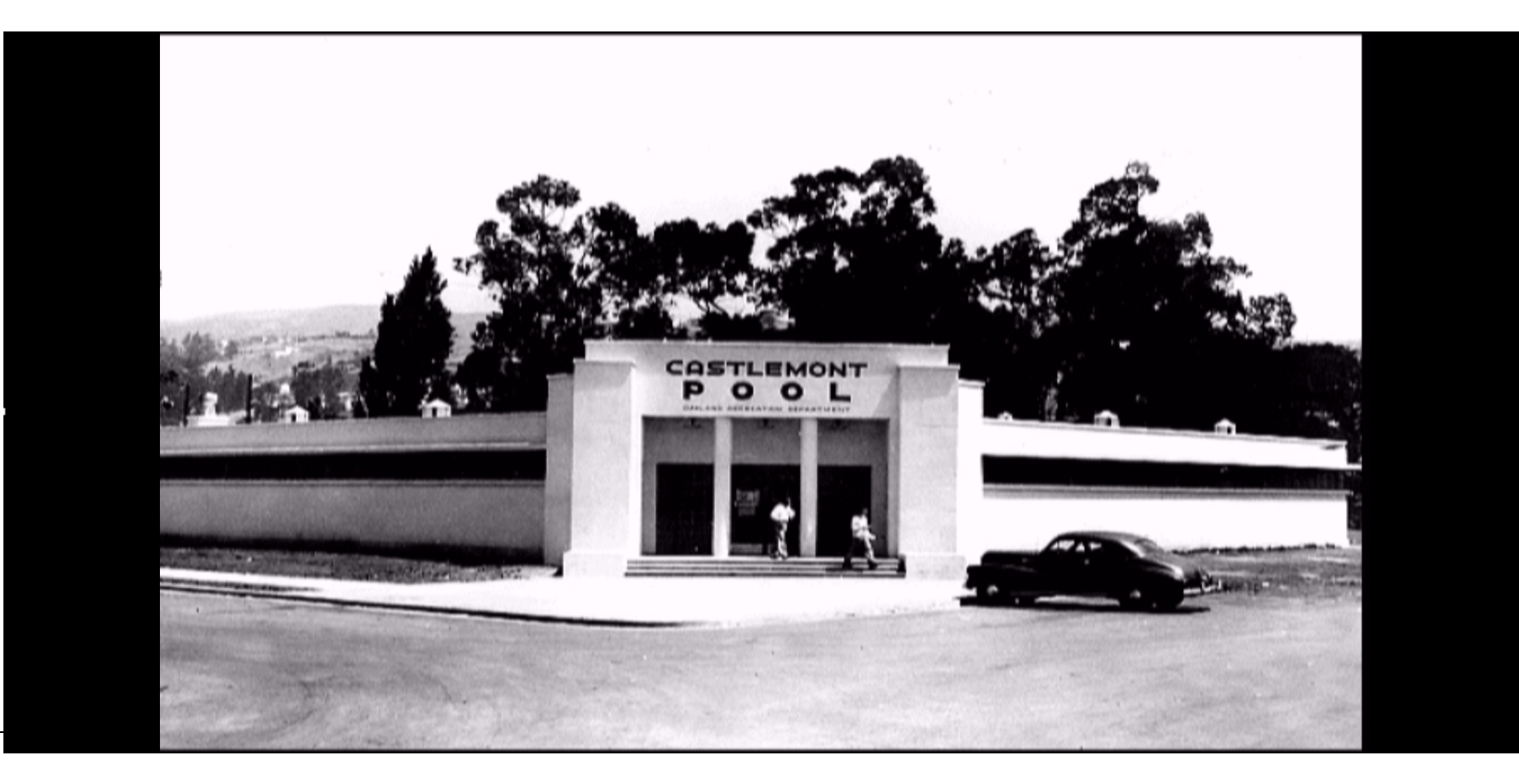 On August 12th 1929 East Oakland High School opened at a cost of $670,000, but the name was short-lived, by a vote of the students and faculty in 1930 the name Castlemont was officially brought to prominence prior to being nationally designated the most beautiful school structure in the country.   The buildings main entrance accessed from Foothill Blvd down six steps to the reflection pool then ascend six steps to extended terrace and the four entry solid redwood doors.  The full length of Castlemonts grounds adjacent to Foothill having been magnificently landscaped.