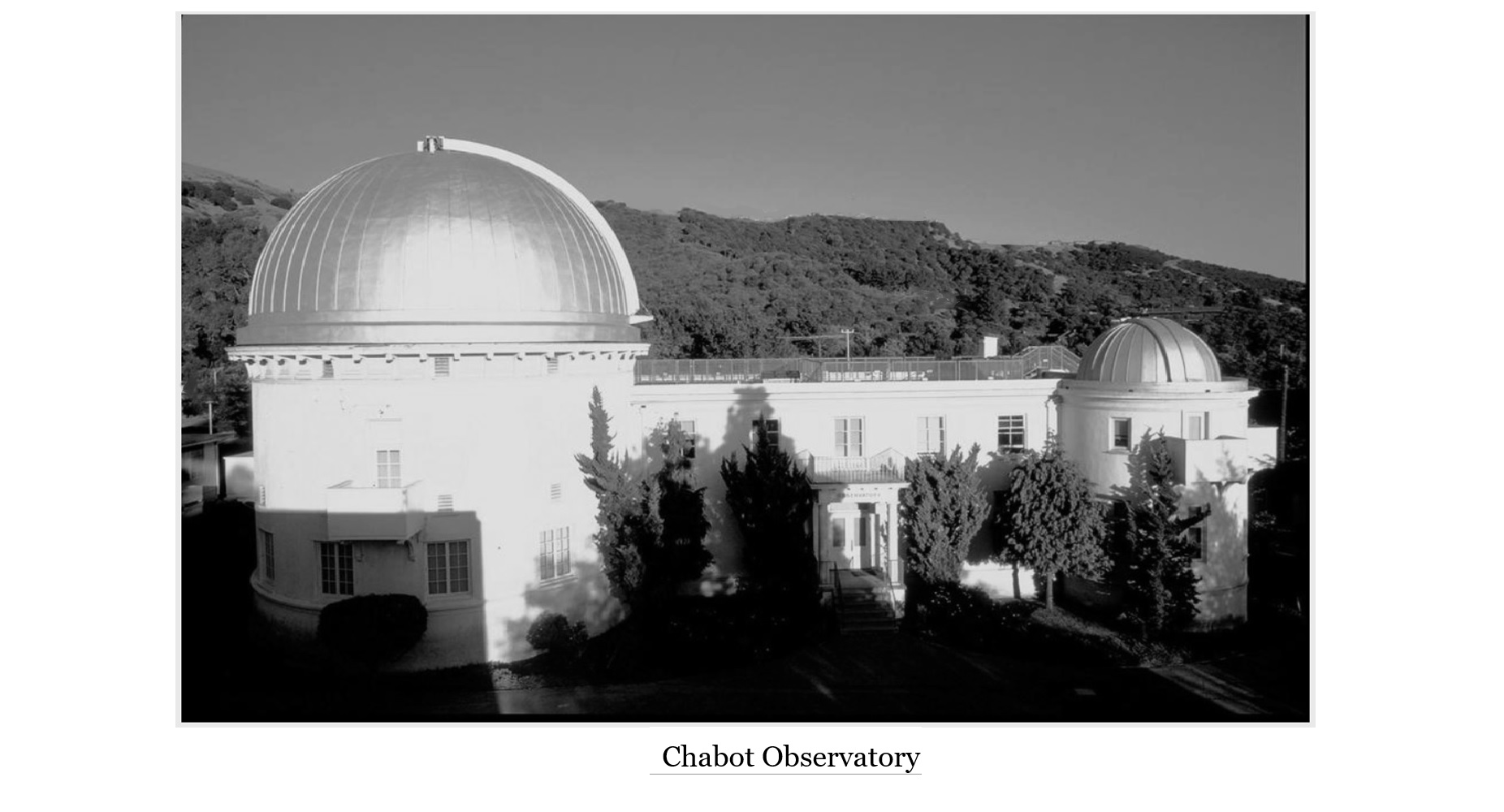 Nestled in the hills a short distance from Mountain Blvd., two miles from Gary’s home was Chabot Observatory. The invitation to tour Chabot was a dream come true as he readied himself in great anticipation. The evening had arrived, dusk was settling in with their arrival at the twin domes adorning the observatory grounds and upon entering were seated in a large room with many others. Gary soon realized the group was a segment of an organized meeting and the program presentation was for new members. Waiting patiently for the parliamentary process and procedures to conclude, the teenage was more than eager to investigate his surroundings.