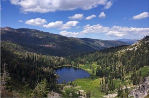 The expedition traveled south on Highway 3,… crossing the east fork of the Scott River 16 miles south of Callahan, turning west on what appeared to be a firebreak or logging road paralleling Tangle Blue Creek, the makeshift road ending shy of the lake. The uphill forest enshrouded incline presenting a problem, the weight distribution in the back of the jeep causing the front wheels to barely make contact with the ground. Albert solved the problem by sitting on the hood, his added weight up front was just what was needed.