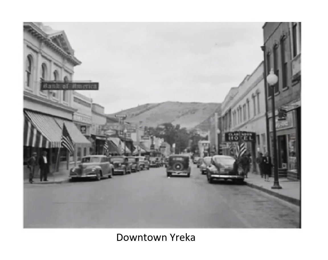 The country was still at war when the local draft board in Yreka summoned Mikes dad to report in August 1944. His home in Yreka was in an upstairs apartment with his Mom and Sister Katy and was able to visit and spend time with his Aunts and cousins, but his interest was elsewhere. The Westbrook family also lived upstairs and their daughter Pearle would visit reading to him, taking him to places that were exciting. On one afternoon taking him to a Frankenstein movie covering his eyes during the scary parts and on other occasions going on picnics and riding together on her horse. One afternoon they ventured on a walk crossing Yreka Creek to go up on the mountain where they were able to look down on the town below, what Mike thought was fun was that they didn’t cross the creek on the bridge, but under it, stepping on the rocks in the flowing water.