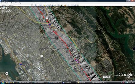 The Hayward Fault traversing thru Oakland 5 blocks from home (red dot)